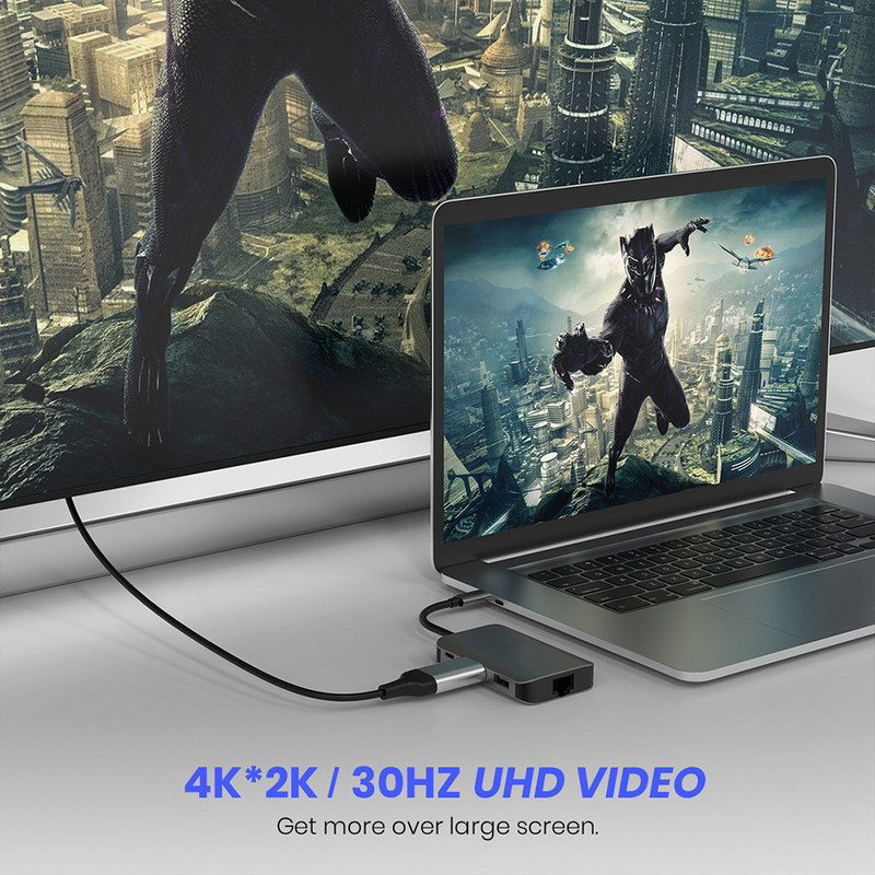 Expand a single USB-C port to connect more,Vilcome 8 in 1 USB-C adapter features a 4K HDMI output port, 3 USB 3.0 ports,ethernet port,SD/TF card readers. And all hub ports can work simultaneously.Mirror or extend your screen with USB C HDMI adapter. Directly stream max 4K HD at 30Hz. And also stream Full HD 1080P or 3D video to an external HDTV display, monitor or projector. Pls make sure Type-C port of laptop support USB-C Video output before buying.3-port USB 3.0 Hub allows you to connect USB flash drive, hard drive, keyboard, mouse, printer, thumb drive etc. Access Max 5 Gbps data syncing speed. SD and TF slots easily access files from universal SD and Micro SD memory card,1000Mbps Ethernet port ensures a more stable and faster wired network connection than wifi connected. Support PD charging at max 87W, This multiport USB C adapter provides one Type-C pass through female port by which you could securely charge connected MacBook or other Type-C laptops.USB Type C Hub is compact and lightweight,easy to carry.
