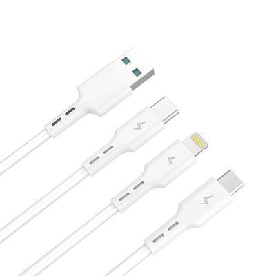 1.2m 3 In 1 USB Charger Cable , Multi Port Micro Lighting USB C Sync And Charge Cable
